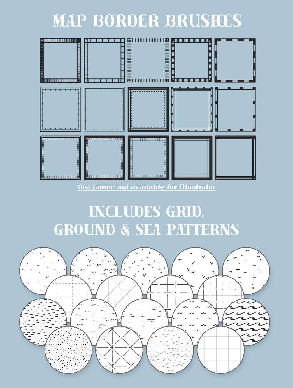 These digital cartography brushes will drown you hours in creating your own adventures on fantasy maps! Literally, because no map is the same and they take quite some time to finish, at least for me! 😁