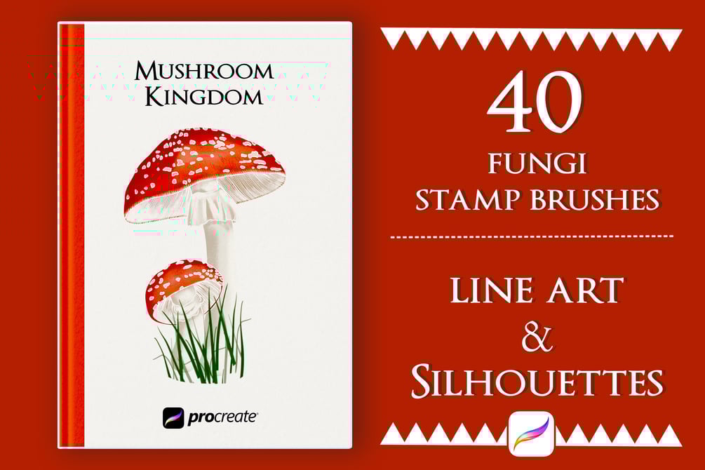 Procreate Brushes | Mushroom Stamps | Fly Agaric Saffron Milkcap Parasol Oyster Chanterelle | Line Art | Outline | Silhouette