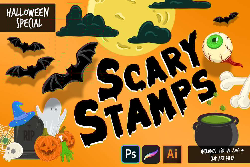 Scary Stamps Halloween Special - Procreate Brushes - Photoshop Custom Shapes & Illustrator Vector Files - Clip Art - SVG - PNG