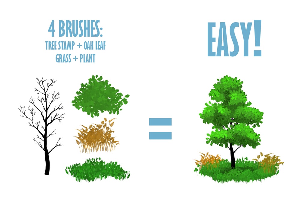 Just alone with these four brushes you can create neat forest scenery or decorate your projects with nature elements :)